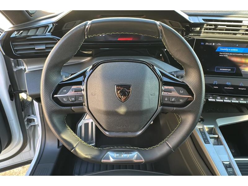Accès et démarrage mains libresAccoudoir central avec rangement et porte gobeletAide au stationnement ARAide au stationnement AVAir conditionné automatique bi-zoneAirbags frontaux conducteur et passager adaptatifs (passager neutralisable par clé), airbags latéraux conducteur et passager AV.airbags rideaux de tête aux places AV/ARBanquette AR rabattable 2/3-1/3Commutation automatique des feux de routeDétection de sous gonflageDirection assistée électriqueESP avec fonction Hill Assist (Aide au démarrage en pente)Essuie-vitre AV à déclenchement automatiqueFeux AR spécifiques avec allumage dynamique griffe à griffeFeux diurnes à LED sous projecteursFixations ISOFIX aux 2 places latérales AR (Top Tether)Fonction BluetoothFonction DAB (Radio Numérique Terrestre)Fonction Mirror Screen (Apple CarPlay / Android Auto ) sans filFrein de stationnement électriqueJantes alliage 19" diamantées GRAPHITELève-vitres AV/AR électriques et séquentiels avec antipincementNavigation connectée avec écran central tactile 10'' et i-Toggles virtuels personnalisablesPédalier Sport et repose pied en aluminiumPack Drive Assist Plus : Régulateur de vitesse adaptatif avec fonction Stop&Go Conduite semi-autonome (niveau 2) Aide au maintien de la position dans la voiePack Safety Plus : Alerte attention conducteur Reconnaissance étendue des panneaux de signalisation et préconisation de vitesse Alerte active de franchissement involontaire de ligne et bas côté Freinage d'urgence automatique de jour et de nuit (caméra & raPare-brise teinté feuilleté acoustiquePeugeot Connect SOSPeugeot i-Cockpit avec instrumentation numérique 10" personnalisableProjecteurs Peugeot Matrix LED Technology Éclairage adaptatif en fonction des conditions extérieures et de la circulationRéglage lombaire du siège conducteurRétroviseur intérieur photosensibleRétroviseurs extérieurs électriques, dégivrants et rabattables électriquement, avec répétiteurs de feux clignotants à LEDSélecteur mode de conduite Eco et SportSeuils de portes AV aluminiumSièges AV réglables en hauteurSystème audio 6 HPVéhicule livré sans kit de dépannage ni roue de secoursVitres AV feuilletées acoustiquesVitres latérales AR et lunette AR chauffante temporisée surteintéesVolant chauffantVolant cuir perforéVolet motorisé avec accès bras chargés
