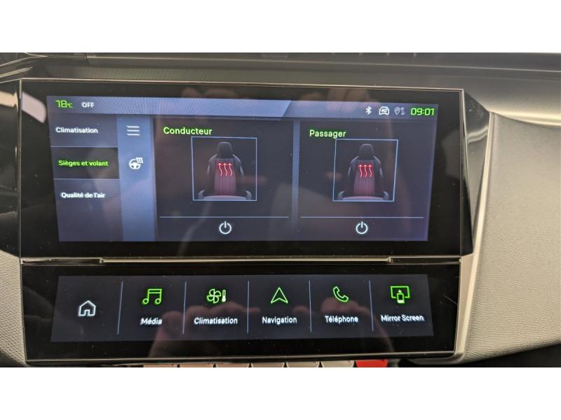 Accès et démarrage mains libresAccoudoir central avec rangement et porte gobeletAide au stationnement ARAide au stationnement AVAir conditionné automatique bi-zoneAirbags frontaux conducteur et passager adaptatifs (passager neutralisable par clé), airbags latéraux conducteur et passager AV.airbags rideaux de tête aux places AV/ARBanquette AR rabattable 2/3-1/3Commutation automatique des feux de routeDétection de sous gonflageDirection assistée électriqueESP avec fonction Hill Assist (Aide au démarrage en pente)Essuie-vitre AV à déclenchement automatiqueFeux AR spécifiques avec allumage dynamique griffe à griffeFeux diurnes à LED sous projecteursFixations ISOFIX aux 2 places latérales AR (Top Tether)Fonction BluetoothFonction DAB (Radio Numérique Terrestre)Fonction Mirror Screen (Apple CarPlay / Android Auto ) sans filFrein de stationnement électriqueJantes alliage 19" diamantées GRAPHITELève-vitres AV/AR électriques et séquentiels avec antipincementNavigation connectée avec écran central tactile 10'' et i-Toggles virtuels personnalisablesPédalier Sport et repose pied en aluminiumPack Drive Assist Plus : Régulateur de vitesse adaptatif avec fonction Stop&Go Conduite semi-autonome (niveau 2) Aide au maintien de la position dans la voiePack Safety Plus : Alerte attention conducteur Reconnaissance étendue des panneaux de signalisation et préconisation de vitesse Alerte active de franchissement involontaire de ligne et bas côté Freinage d'urgence automatique de jour et de nuit (caméra & raPare-brise teinté feuilleté acoustiquePeugeot Connect SOSPeugeot i-Cockpit avec instrumentation numérique 10" personnalisableProjecteurs Peugeot Matrix LED Technology Éclairage adaptatif en fonction des conditions extérieures et de la circulationRéglage lombaire du siège conducteurRétroviseur intérieur photosensibleRétroviseurs extérieurs électriques, dégivrants et rabattables électriquement, avec répétiteurs de feux clignotants à LEDSélecteur mode de conduite Eco et SportSeuils de portes AV aluminiumSièges AV réglables en hauteurSystème audio 6 HPVitres AV feuilletées acoustiquesVitres latérales AR et lunette AR chauffante temporisée surteintéesVolant chauffantVolant cuir perforéVolet motorisé avec accès bras chargés