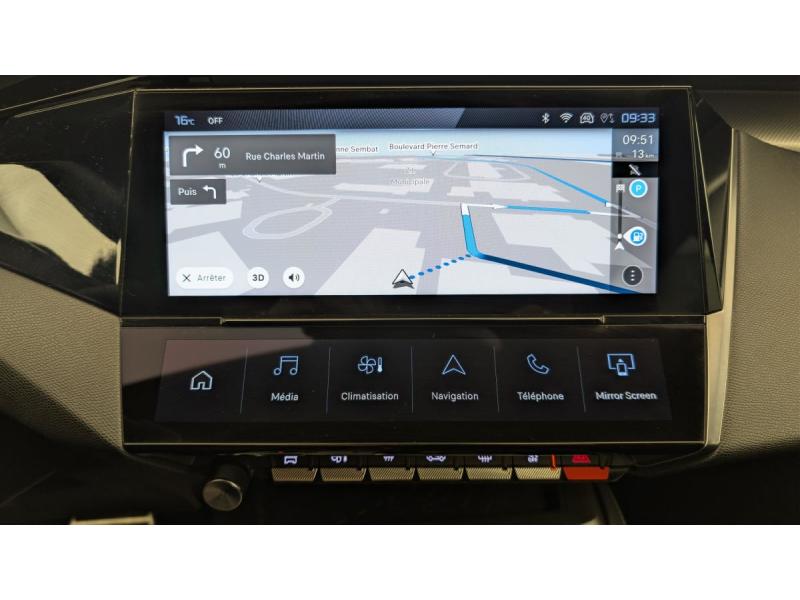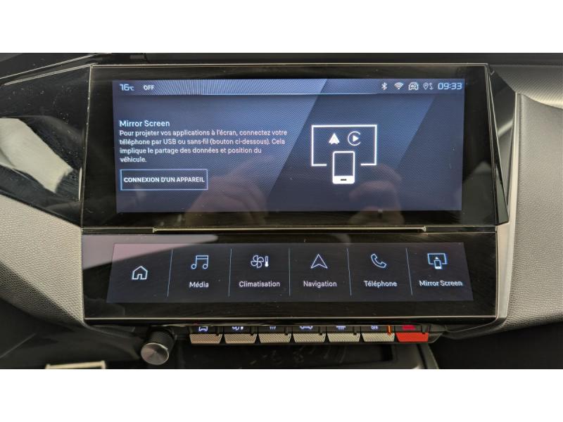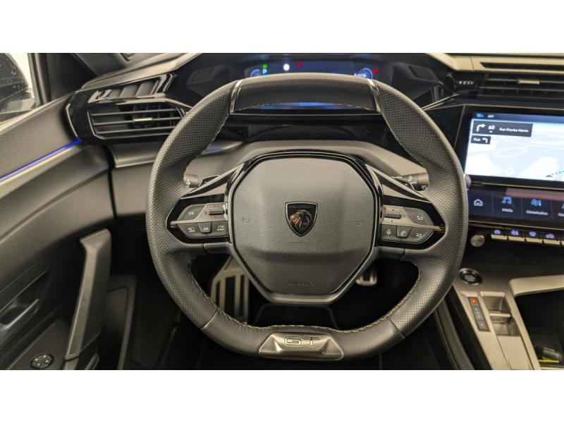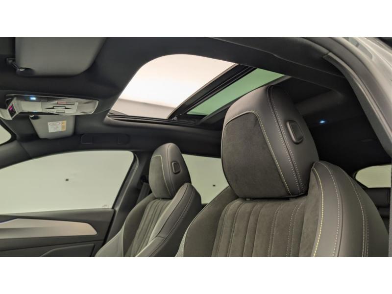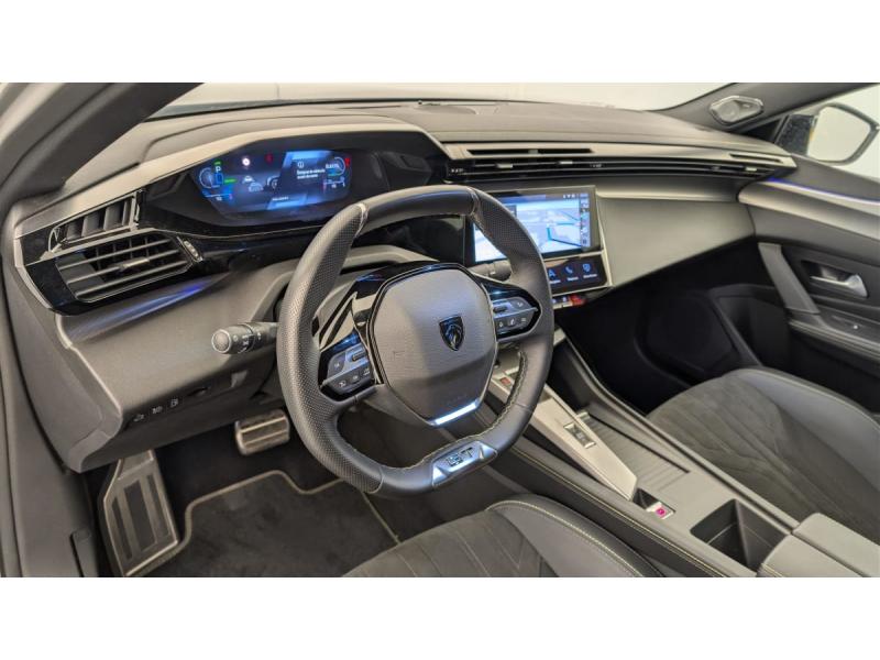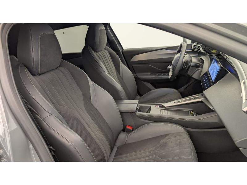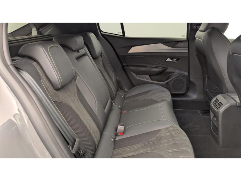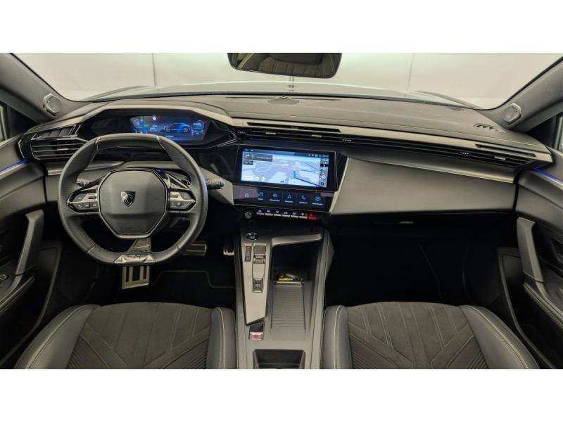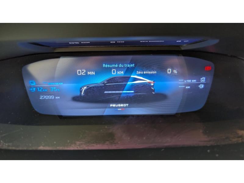Accès et démarrage mains libresAccoudoir central avec rangement et porte gobeletAide au stationnement ARAide au stationnement AVAir conditionné automatique bi-zoneAirbags frontaux conducteur et passager adaptatifs (passager neutralisable par clé), airbags latéraux conducteur et passager AV.airbags rideaux de tête aux places AV/ARBanquette AR rabattable 1/3-2/3Câble de recharge mode 2 (10 A, 2,3 kW) pour prise domestique standardCommutation automatique des feux de routeDétection de sous gonflageDirection assistée électriqueESP avec fonction Hill Assist (Aide au démarrage en pente)Essuie-vitre AV à déclenchement automatiqueFeux AR spécifiques avec allumage dynamique griffe à griffeFeux diurnes à LED sous projecteursFixations ISOFIX aux 2 places latérales AR (Top Tether)Fonction BluetoothFonction DAB (Radio Numérique Terrestre)Fonction Mirror Screen (Apple CarPlay / Android Auto ) sans filFrein de stationnement électriqueKit de dépannage de pneumatiqueLève-vitres AV/AR électriques et séquentiels avec antipincementNavigation connectée avec écran central tactile 10"et i-Toggles virtuels personnalisablesPédalier Sport aluminium et repose pied en aluminiumPack Drive Assist Plus : Régulateur de vitesse adaptatif avec fonction Stop&Go Aide au maintien de la position dans la voie (conduite semi-autonome) Conduite semi-autonome (niveau 2)Pack Rear traffic detection : Surveillance d'angles morts Alerte de trafic AR transversal (Rear Cross Traffic Alert) Aide au changement de voie longue portéePack Safety Plus : Reconnaissance des panneaux de vitesse et préconisation de vitesse Alerte active de franchissement involontaire de ligne et bas côté Alerte attention conducteur par caméra Freinage d'urgence automatique de jour et de nuit (caméra & radarPare-brise teinté feuilleté acoustiquePeugeot i-Cockpit avec instrumentation numérique 10" 3D personnalisableProjecteurs Peugeot Matrix LED Technology Éclairage adaptatif en fonction des conditions extérieures et de la circulationRéglage lombaire du siège conducteurRétroviseur intérieur électrochrome sans cadreRétroviseurs extérieurs électrique avec éclairage d'approche, dégivrants et rabattables électriquement, avec répétiteurs de feux clignotants à LEDReconnaissance étendue des panneaux de signalisationReconnaissance vocale en langage naturelSélecteur de modes de conduite (Electric, Hybrid, Sport)Sellerie Tri matières maille Fraxx Knit / TEP / AlcantaraSeuils de portes AV aluminiumSièges AV réglables en hauteurVitres AV feuilletées acoustiquesVitres latérales AR et lunette AR chauffante temporisée surteintéesVolant avec réglage manuel en hauteur et en profondeurVolant chauffantVolant cuir perforéVolet motorisé avec accès bras chargés