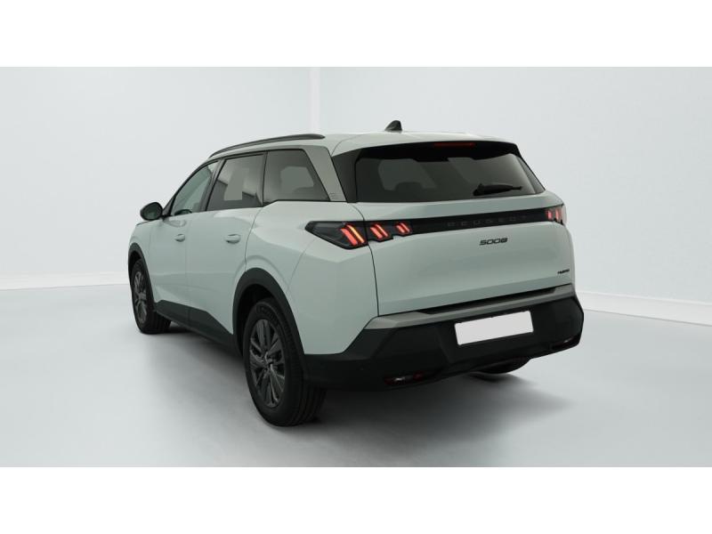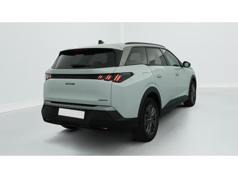 2 prises 12 V (Console centrale, coffre)4 poignées de maintien rétractables (2 à l'AV et 2 à l'AR)6 airbags: Frontaux conducteur et passager (passager neutralisable par clé), latéraux conducteur et passager AV (thorax et bassin), rideaux aux places AV et AR (tête et thorax)6 HP (2 tweeters et 2 woofers à l'AV et 2 larges bandes à l'AR)Accès et démarrage mains libres ProximityAir conditionné automatique tri-zoneAllumage automatique des pharesBandeau entre les feux AR Noir laqué avec lettrage PEUGEOTBandeau entre les projecteurs Noir laqué avec logo 5008Banquette 2 places au rang 3 avec dossiers rabattables 50/50Banquette rang 2 coulissante 60/40, avec dossiers inclinables et rabattables 40/20/40, avec fonction Easy Access aux places du rang 3Barres de toit longitudinales Noir BrillantCalandre couleur caisse, écopes latérales Noir laqué, décor inférieur Gris MéteorDétection de sous-gonflage indirecteEclairage intérieur Plafonnier AV et liseuses AR à LED, Boite à gants et rangement de console éclairés à LED, Eclairage des caves à pieds AV à LEDEnjoliveurs de passages de roues et protections inférieures de portes Noir grainéESP avec aide au démarrage en penteEssuie-vitre AV à déclenchement automatiqueFeux diurnes 3 griffes à LEDFixations ISOFIX et Top Tether aux places latérales rang 2Frein de stationnement électriqueHabitacle et ciel de pavillon NoirJantes alliage 18"Jupe inférieure Noir grainéLécheurs de vitres masquésLève-vitres AV/AR électriques et séquentiels avec antipincementMonogrammes AR 5008 et HybridMonogrammes AV : blason PEUGEOT et 5008Pack Safety Plus : Alerte attention conducteur Régulateur / Limiteur de vitesse Reconnaissance étendue des panneaux de signalisation et préconisation de vitesse Alerte active de franchissement involontaire de ligne et bas côté Freinage d'urgence automatique avPare chocs AR avec décor Gris MeteorPEUGEOT i-Connect Radio DAB, Bluetooth (connexion 2 téléphones), Mirror Screen sans fil (Apple CarPlay / Android Auto), Peugeot Connect SOS & Assistance, 1 prise USB C (Data & charge)Projecteurs Peugeot LED TechnologyRétroviseur intérieur électrochromeRétroviseurs extérieurs dégivrants avec réglage et rabattement électriques, éclairage de seuilSellerie tissu CRISPY embossé, accompagnement TEP Isabella, écharpe tissu RIMINI chiné, surpiqûres QuartzSiège conducteur et passager avec réglage en hauteur manuelVisiopark 1: caméra de recul HD & aide au stationnement AR, graphique et sonoreVitres AR, custodes et lunette AR teintées