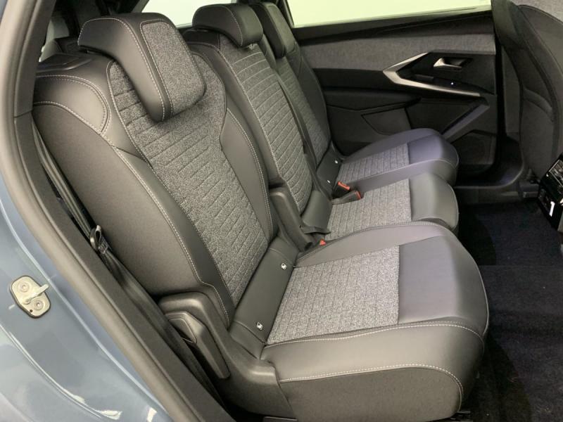 3 prises 12 V (Console centrale, rang 2, coffre)4 poignées de maintien rétractables (2 à l'AV et 2 à l'AR)6 airbags: Frontaux conducteur et passager (passager neutralisable par clé), latéraux conducteur et passager AV (thorax et bassin), rideaux aux places AV et AR (tête et thorax)6 HP (2 tweeters et 2 woofers à l'AV et 2 larges bandes à l'AR)ABSAccès et démarrage mains libres Proximity 2 Télécommandes 3 boutons (verrouillage, coffre, déverrouillage)Air conditionné automatique tri-zoneAllumage automatique des pharesBanquette 2 places au rang 3 avec dossiers rabattables 50/50Banquette rang 2 coulissante 60/40, avec dossiers inclinables et rabattables 40/20/40, avec fonction Easy Access aux places du rang 3Barres de toit longitudinales Noir BrillantBoîte de vitesse automatique, séquentielle (6 rapports)Contrôle de tractionDétection de sous-gonflage indirecteDirection assistéeEclairage intérieur Plafonnier AV et liseuses arrière à LED, Boite à gants et rangement de console éclairés à LED, Eclairage des caves à pieds AV à LEDESP avec aide au démarrage en penteEssuie-vitre AV à déclenchement automatiqueFeux AR 3 griffes à LEDFeux diurnes 3 griffes à LEDFixations ISOFIX et Top Tether aux places latérales rang 2Frein de stationnement électriqueJantes alliage 18" BASELLécheurs de vitres masquésLève-vitres AV/AR électriques et séquentiels avec antipincementPack Safety Plus : Alerte attention conducteur Régulateur / Limiteur de vitesse Reconnaissance étendue des panneaux de signalisation et préconisation de vitesse Alerte active de franchissement involontaire de ligne et bas côté Freinage d'urgence automatique avPare-brise feuilleté acoustiquePEUGEOT i-Cockpit panoramique avec Double écran HD flottant (2 x 10'')PEUGEOT i-Connect Radio DAB, Bluetooth (connexion 2 téléphones), Mirror Screen sans fil (Apple CarPlay / Android Auto), Peugeot Connect SOS, 1 prise USB C (Data & charge)Plancher de coffre modulable 2 positionsProjecteurs Peugeot LED TechnologyRétroviseur intérieur électrochromeRétroviseurs extérieurs dégivrants avec réglage et rabattement électriques, éclairage de seuilSellerie tissu CRISPY embossé, accompagnement TEP Isabella, écharpe tissu RIMINI chiné, surpiqûres QuartzSiège conducteur et passager avec réglage en hauteur manuelVéhicule livré sans kit de dépannage ni roue de secoursVisiopark 1: caméra de recul HD & aide au stationnement AR, graphique et sonoreVitres AR, custodes et lunette AR teintéesVitres AV électriquesVolant compact croûte de cuir avec commandes intégrées Noir laqué, décors Gris Stène