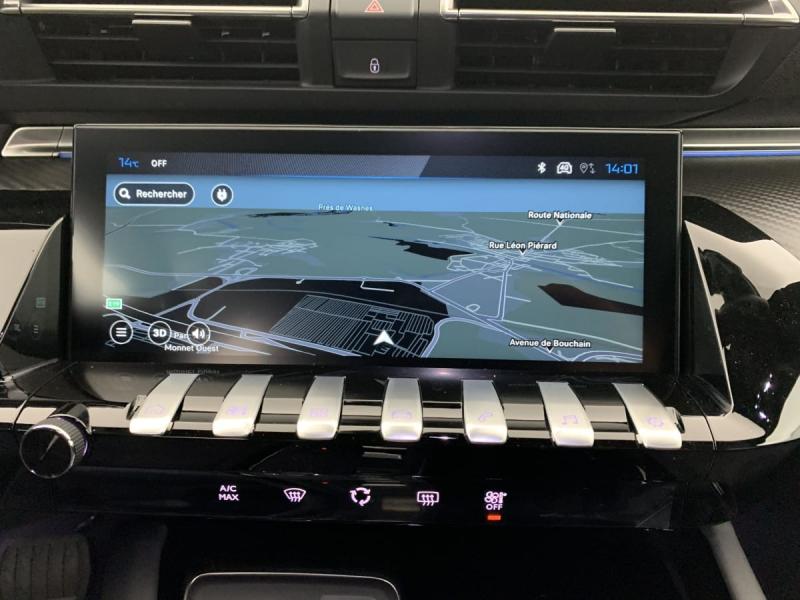 6 airbags (Frontaux adaptatifs, latéraux AV, rideaux AV/AR)ABSAccès et démarrage mains libresAccoudoir central AV en TEP à ouverture papillon, avec compartiment de rangement éclairéAide au stationnement AR, AV et latérale (graphique et sonore)Air conditionné automatique bi-zone avec aérateurs aux places ARAppuis-tête à sécurité optimisée réglables en hauteur (conducteur, passager et AR x3)AVAS (système d'alerte sonore du véhicule émis à faible allure en roulage électrique, audible depuis l'extérieur pour la sécurité des piétons)Banquette AR rabattable 1/3 - 2/3 avec accoudoir central et commandes de rabattement depuis le coffreBarres de toit longitudinales Noir BrillantBoîte de vitesse automatique (8 rapports)Câble de recharge T2 mode 2 (10 A / 2,3 kW)Contrôle de tractionDétection de sous-gonflage indirecteDirection assistée électrique, réglable en hauteur et profondeur (mécanique)Eclairage d'ambiance Bleu Glacier sur panneaux de portes AVEclairage intérieur LED : Plafonniers AV et AR avec 2 spots de lecture, Pare soleil avec miroirs de courtoisie éclairés, rangements, caves à piedsESPFeux arrière Full LED avec indicateurs de direction défilantsFixations ISOFIX aux places latérales ARFonction DAB (Radio Numérique Terrestre)Fonction Mirror Screen (Apple CarPlay / Android Auto ) sans filFrein de stationnement électrique avec aide au démarrage en pente et serrage automatiqueKit de dépannage de pneumatiquePack Safety Plus : Freinage d'urgence automatique avec caméra & radar Système de surveillance d'angle mort Reconnaissance étendue des panneaux de signalisation Alerte risque de collision et Alerte attention conducteur Alerte de franchissement involontaire de lignePack Visibilité : Eclairage d'accompagnement automatique Allumage automatique des feux de croisement Essuie-vitre AV à déclenchement automatiquePeugeot i-Cockpit avec combiné numérique tête haute 12,3"Peugeot i-Connect Advanced - Navigation 3D connectée (cartographie Europe) avec écran tactile 10" HD - Reconnaissance vocale en langage naturel - Services de navigation connectée TomTomProgramme de Stabilité Electronique (ESC) Avec antipatinage des roues (ASR), antiblocage des roues (ABS), répartiteur électronique de freinage (REF), assistance au freinage d'urgence (AFU), contrôle dynamique de stabilité (CDS) et contrôle de stabilit&eacProjecteurs Peugeot Matrix LED Technology Eclairage adaptatif avec correction automatique de site, 3 modes (Routes, Autoroutes et Brouillard) et feux diurnes 3 griffes à LED intégrés aux projecteursRétroviseur intérieur électrochromeRétroviseurs extérieurs électriques et dégivrants, rabattables électriquement avec éclairage d'accueil à LED, témoins de surveillance d'angles mortsSécurité enfants des vitres ARSélecteur de boite de vitesses automatique e-ToggleSélecteur de modes de conduite 'Drive Mode' (Electric, Hybrid, Sport)Sellerie mi-TEP / Tissu Falgo avec surpiqures QuartzSièges conducteur et passager réglables en hauteur, avec réglage lombaire électrique (4 voies)Toggle Switches' chromés (touches 'piano' d'activation des fonctions de l'écran tactile)Verrouillage automatique de tous les ouvrants en roulantVitres électriques AVVitres latérales AR et lunette AR surteintéesVolant cuir fleur avec commandes intégrées