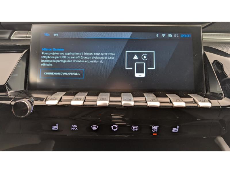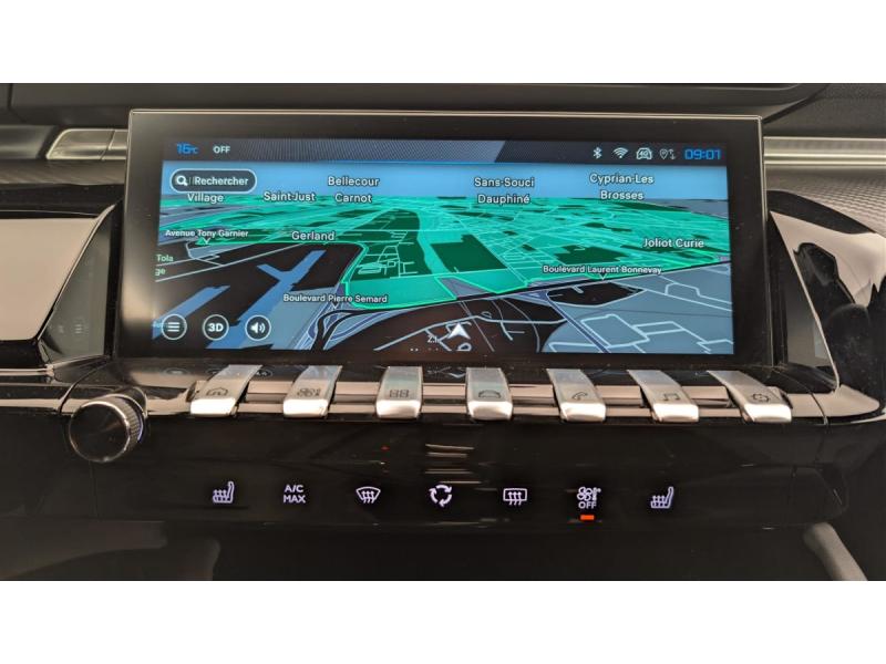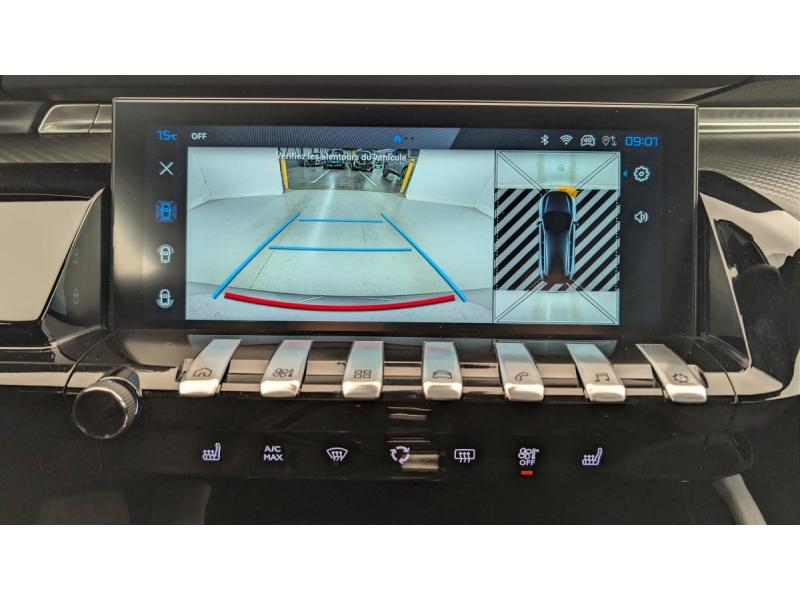 6 airbags (Frontaux adaptatifs, latéraux AV, rideaux AV/AR)Accès et démarrage mains libresAccoudoir central AV en TEP à ouverture papillonAide au stationnement AR, AV et latérale (graphique et sonore)Air conditionné automatique bi-zoneAppuis-tête à sécurité optimisée réglables en hauteur (conducteur, passager et AR x3)AVAS (système d'alerte sonore du véhicule émis à faible allure en roulage électrique, audible depuis l'extérieur pour la sécurité des piétons)Avertisseur de temps de conduiteBanquette AR rabattable 1/3 - 2/3 avec accoudoir central, trappe à skis et commandes de rabattement depuis le coffreBarres de toit longitudinales Noir BrillantCâble de recharge T2 mode 2 (10 A / 2,3 kW)Coques et embases de rétroviseurs extérieurs Noir brillantDétection de sous-gonflage indirecteDirection assistée électrique, réglable en hauteur et profondeur (mécanique)Eclairage intérieur LED : Plafonniers AV et AR avec 2 spots de lecture, Pare soleil avec miroirs de courtoisie éclairés, rangements, caves à piedsFeux arrière Full LED avec indicateurs de direction défilantsFixations ISOFIX aux places latérales ARFonction DAB (Radio Numérique Terrestre)Fonction Mirror Screen (Apple CarPlay / Android Auto ) sans filFrein de stationnement électriqueJantes alliage 17" Merion bi-ton diamanteesKit de dépannage de pneumatiquePack Safety Plus : Freinage d'urgence automatique avec caméra & radar Système de surveillance d'angle mort Reconnaissance étendue des panneaux de signalisation Alerte risque de collision et Alerte attention conducteur Alerte de franchissement involontaire de lignePack Visibilité : Eclairage d'accompagnement automatique Allumage automatique des feux de croisement Essuie-vitre AV à déclenchement automatiquePeugeot Connect SOSPeugeot i-Cockpit avec combiné numérique tête haute 12,3"Peugeot i-Connect Advanced - Navigation 3D connectée (cartographie Europe) avec écran tactile 10" HD - Reconnaissance vocale en langage naturelProgramme de Stabilité Electronique (ESC) Avec antipatinage des roues (ASR), antiblocage des roues (ABS), répartiteur électronique de freinage (REF), assistance au freinage d'urgence (AFU), contrôle dynamique de stabilité (CDS) et contrôle de stabilit&eacProjecteurs Peugeot Matrix LED Technology Eclairage adaptatif avec correction automatique de site, 3 modes (Routes, Autoroutes et Brouillard) et feux diurnes 3 griffes à LED intégrés aux projecteursRégulateur / limiteur de vitesse avec Préconisation Limitation de VitesseRétroviseur intérieur électrochromeRétroviseurs extérieurs électriques et dégivrants, rabattables électriquement avec éclairage d'accueil à LED, témoins de surveillance d'angles mortsSélecteur de boite de vitesses automatique e-ToggleSélecteur de modes de conduite 'Drive Mode' (Electric, Hybrid, Sport)Sellerie mi-TEP / Tissu Falgo avec surpiqures QuartzSièges conducteur et passager réglables en hauteur, avec réglage lombaire électrique (4 voies)Toggle Switches' chromés (touches 'piano' d'activation des fonctions de l'écran tactile)VisioPark 1 Caméra de recul Haute Définition 180° avec restitution sur l'écran tactile d’une vue AR et d'une vue de dessus de l'environnement AR du véhiculeVitres latérales AR et lunette AR surteintéesVolant cuir fleur avec commandes intégrées
