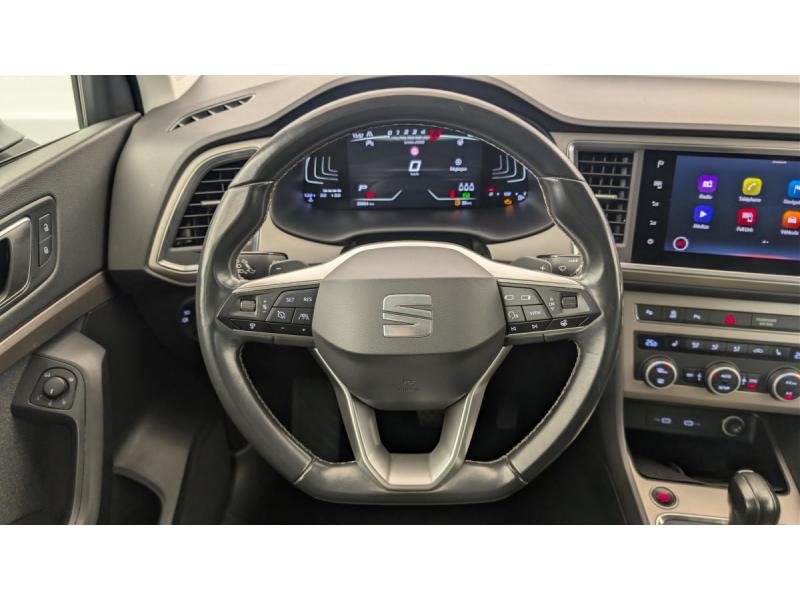2 Fixations Isofix + Top tether intégrées aux sièges AR pour ancrage de sièges enfant4 prises USB-C éclairéesAccoudoir central AV et ARAide au démarrage en côte (Hill Hold Control)Airbag de genoux (côté conducteur)Airbags frontaux conducteur et passager (passager déconnectable)Airbags latéraux tête/thorax AVBanquette AR rabattable 2/3-1/3 avec accoudoir et trappe à skisBluetoothCaméra de reculClimatisation automatique bi-zone Climatronic avec système Pure AirConnectivity Box avec chargeur à inductionDétecteur de fatigueDétecteur de pluie et luminositéDigital Cockpit Pro 10"Eclairage d'ambiance intérieur "Advanced Ambient Light"Feux AR à LED avec clignotants AR à défilementFrein à main électriqueFront Assist : système de surveillance périmétrique avec fonction de freinage de secours en villeFull Link (MirrorLink + Android Auto + Apple CarPlay)Jantes alliage 18" PerformanceKeyless Access (accès et démarrage mains-libres) avec 2 télécommandesMolette Driving Experience avec SEAT Drive Profile et direction progressive plus fonctionnalités OFFROADPack Design Xperience : Sabot de protection AV, diffuseur AR et inserts latéraux Gris AluminiumPack Drive Assist M : Feux de route intelligents Lane Assist: Alerte le conducteur en cas de chevauchement involontaire de ligne et corrige automatiquement la trajectoire Sign Assist (Reconnaissance des panneaux de signalisation) Régulateur de vitesse adaptatif ACC prédictifPrise 12V AVProjecteurs antibrouillard à LEDProjecteurs Full LEDRétroviseur intérieur électrochromeRétroviseurs extérieurs dégivrants et rabattables électriquement avec abaissement automatique du rétroviseur passager en marche ARRadio Numérique DABRails de toit et entourages des vitres latérales chromésSellerie en tissuSièges conducteur et passager réglables en hauteur avec réglage lombaireSpots de lecture AV/ARSystème "Start-Stop" automatique et dispositif de récupération de l'énergie de freinageSystème d'aide active au stationnement Park AssistSystème de navigation Navi System+ 9,2"Tableau de bord noir Titan avec insert bois clairVitres AR surteintéesVitres AV/AR électriques à impulsion avec verrouillageVolant réglable en hauteur et en profondeurVolant Sport multifonctions en cuir à méplat avec palettes