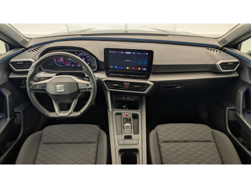 2 ports USB-C ARAccoudoir central AV et ARAide au stationnement AV et ARAirbags (frontaux, latéraux, rideaux)Allumage automatique des phares et essuie-glaceBanquette AR rabattable 2/3-1/3BluetoothCâble de recharge pour prise domestiqueCaméra de reculCiel de pavillon noirClimatronic 3 zonesCommande vocaleConnectivity Box avec chargeur à inductionDésactivation airbag passagerDétecteur de fatigueDigital Cockpit 10,25"Eclairage d'ambiance intérieur à LED personnalisableFixation ISOFIX sur sièges ARFrein à main électrique avec aide au démarrage en côteFront Assist avec détection des piétons et des cyclistesJantes alliage 18" Terramar, pneus 225/40 R18 92YKeyless Access: Accès et démarrage sans cléKit anti-crevaisonLane Assist: Alerte le conducteur en cas de chevauchement involontaire de ligne et corrige automatiquement la trajectoireOrdinateur de bord 3,5'' avec affichage de la température extérieurePark Assist : Système d'aide active au stationnement en créneau et en batailleProjecteurs antibrouillard à LEDProjecteurs Full LED avec bandeau de LED AR avec clignotants dynamiquesRéglage lombaire du siège passagerRégulateur/Limiteur de vitesseRétroviseur intérieur électrochromeRétroviseurs extérieurs rabattables électriquement et chauffantsRadio Numérique DABSEAT Drive Profile-sélection du mode de conduiteSellerie en tissuSièges SportSurpiqûres rouges dans le sellerieVitres AR surteintéesVitres AV/AR électriquesVolant cuir multifonctionsVolant spécifique avec logo FR