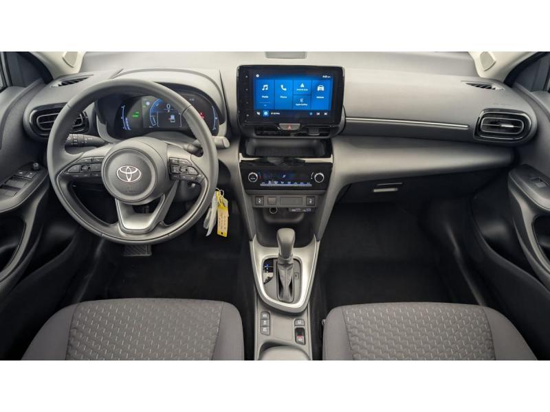 2 ports USB-C6 HPABSAirbags frontaux et latéraux AVAntenne de toit type requinBoîte automatique à variation continueCaméra de reculCarrosserie monotonCiel de toit grisClimatisation automatiqueConnectivité smartphone Apple CarPlay et Android Auto sans filContrôle de la pression des pneus des rouesContrôle de traction (TCS)Direction assistéeDouble plancher du coffreEcran TFT 7"Enjoliveurs 16"Essuie-glace à détecteur de pluieFeux AR halogènesFeux AV halogènesFrein de parking électroniqueLampe de plafonnier ARPeinture non métalliséePrise 12 V AVRétroviseur intérieur électrochromatiqueRétroviseurs extérieurs chauffantsSellerie tissu gris foncéSièges AR rabattables 40:60Sièges conducteur et passager réglable en hauteurSystème audio Toyota Touch 3 écran tactile 7", radio digitale (DAB), BluetoothSystème d'appel d'urgence automatique "E-Call"Toyota T-MATE / Toyota Safety Sense 3 Système de sécurité précollision avec détection des véhicules, piétons et cyclistes, actif également dans les intersections. Alerte de franchissement de ligne avec aide au maintien dans la file, assistant dVerrouillage centraliséVitres AV/AR électriquesVolant en cuir