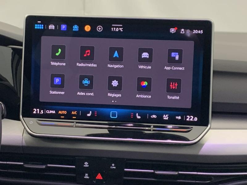 2 interfaces USB-C à l'AV2 lampes de lecture à l'AV et à l'AR2 prises de chargement USB-C derrière l'accoudoir pour les passagers ARAccoudoir central AR rabattable avec 2 portes-boissonsAccoudoir central AV réglable en hauteur et en profondeur avec compartiment de rangementActivation automatique du signal de détresse en cas de freinage d'urgenceAirbags de tête pour passagers AV et ARAirbags frontaux AV conducteur et passager (Airbag passager désactivable)Airbags latéraux AVAlerte de perte de pression des pneusApp-Connect sans fil affichage et contrôle via l'écran tactile du véhicule, du contenu, des fonctions et des applications compatibles présents sur le Smartphone (compatibilité avec les systèmes Apple CarPlay et Android Auto)Application décorative "New Brushed Dark Metal" pour le tableau de bord et les revêtements de porte à l'AVAppuis lombaires réglables à l'AVAppuis-tête AV réglables en hauteurAvertisseur sonore et lumineux pour ceintures non attachées à l'AV et à l'ARBanquette AR rabattable 2/3-1/3 avec trappe à skisCache-bagages amovibleCaméra de recul "Rear View" caméra de recul avec visualisation de la zone située AR du véhicule sur l'écran de la radioCeintures de sécurité automatiques AV 3 points à enrouleur, réglables en hauteur, avec prétentionneursCerclage chromé des commandes des vitres, de réglage des rétroviseurs et des aérateursChargeur inductionClimatisation "Air Care Climatronic" 3 zones et filtre anti-allergène et éléments de commandes à l'ARCorrecteur électronique de trajectoire ESP, amplificateur de freinage d'urgence, antiblocage des roues ABS, blocage électronique de différentiel EDS, répartiteur électronique de freinage EBV, antipatinage électronique ASR, régulateur électDigital Cockpit Pro : combiné d'instruments digital avec écran digital haute résolution de 10,25"eCall : Appel d'urgence manuel ou automatiqueEclairage à LED de la plaque d'immatriculation AREclairage d'ambiance - 10 couleursEssuie-glace AR intermittent avec lave-glaceFatigue Détection : système de détection de fatigue du conducteur qui analyse le comportement du conducteur et recommande un temps de repos par l'apparition d'un message visuel et sonoreFeu AR de brouillard d'un côté, feux de recul des deux côtésFrein de stationnement électromécanique avec fonction d'immobilisation en pente "Auto Hold" et assistant de démarrage en côteFront Assist - Système de surveillance périmétrique avec fonctions de freinage d'urgence en ville et détection des piétonsIndicateur de température extérieure avec avertisseur de gelInterface téléphone BluetoothLane Assist: Assistant de maintien dans la voieLimiteur de vitesse prédictifMesures de protection des piétons supplémentairesMiroirs de courtoisie éclairés dans les pare-soleilsOeillets d'arrimage ISOFIX (dispositif pour fixation de 2 sièges-enfants sur la banquette AR)Pack Visibilité - Allumage automatique des feux avec fonctions "Coming home" et "Leaving home" - Capteur de pluie avec essuie-glace automatique : Allumage automatique des feux avec fonctions "Coming Home - Leaving Home" Capteurs de pluie avec essuie-glace automPare-chocs, boîtiers de rétroviseurs extérieurs et poignées de portes dans la couleur carrosseriePark Pilot : Système d'aide au stationnement AV/AR avec signaux sonores et visualisation de la distance des obstacles sur l'écranPréparation pour "VW Connect" et "VW Connect Plus"Prise 12 V dans le coffreProjecteurs 100% LEDProtection antidémarrageRéception de radio numérique (DAB+)Réglage du site des pharesRégulateur de vitesse adaptatif et prédictif ACC avec limiteur de vitesse détecte dans les limites du système et à l'aide d'un capteur radar les véhicules qui précèdent et maintient la distance en intervenant sur les freins et l'Rétroviseur intérieur à réglage jour/nuit automatiqueRétroviseurs extérieurs avec dégivrage séparéRétroviseurs extérieurs avec fonction mémoireRétroviseurs extérieurs réglables électriquementRétroviseurs extérieurs rabattablesRevêtement de porte et latéral en feuille de mousse et tissuRoue de secours à encombrement réduit avec cricSellerie en tissu "Maze"Service d'appel d'urgenceSièges confort à l'AV réglables en hauteurSign Assist: Reconnaissance des panneaux de signalisation et affichage sur le 'Digital Cockpit' et l'écran du système de radionavigationSystème de freinage anti multicollision : ce dispositif freine automatiquement le véhicule après un premier choc afin de limiter le risque de multicollisionSystème Start/Stop avec dispositif de récupération de l'énergie au freinageVerrouillage centralisé avec télécommande à fréquence radio par clé rétractableVitres AV et AR électriquesVolant réglable en hauteur et en profondeur