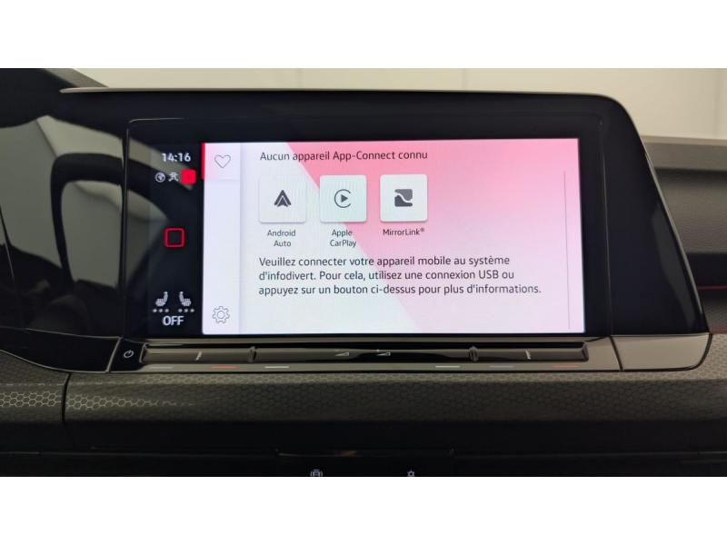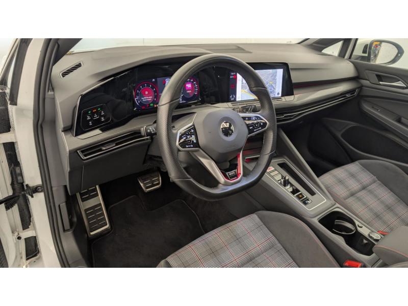 2 interfaces USB-C à l'AV et 2 prises de chargement USB-C derrière laccoudoir pour les passagers ARAccoudoir central AV et ARAirbags de tête pour passagers AV/ARAirbags frontaux AV conducteur et passager (Airbag passager désactivable)Airbags latéraux AVAlerte de perte de pression des pneusAllumage automatique des feux avec fonctions "Coming Home - Leaving Home"App-Connect sans fil, affichage et contrôle via l'écran tactile de la voiture du contenu, des fonctions et des applications compatibles présents sur le Smartphone (compatibilité avec les systèmes Apple CarPlay et Android Auto). Fonction sans fil uniquement dispBanquette AR rabattable 2/3-1/3 avec trappe à skisCiel de pavillon Noir SoulClimatiseur "Air Care Climatronic" 3 zones et filtre anti-allergène et éléments de commandes à l'ARCommade vocale intuitiveCorrecteur électronique de trajectoire ESP, amplificateur de freinage d'urgence, antiblocage des roues ABS, blocage électronique de différentiel EDS, répartiteur électronique de freinage EBV, antipatinage électronique ASR, régulateur électDigital Cockpit Pro : combiné d'instruments digital avec écran digital haute résolution de 10,25"Disques de frein 17" à l'AV et à l'AREclairage d'ambiance - 30 couleurs et éclairage de plancher à l'AVFatigue Detection : système de détection de fatigue du conducteur qui analyse le comportement du conducteur et recommande un temps de repos par l'apparition d'un message visuel et sonoreFrein de stationnement électromécanique avec fonction d'immobilisation en pente "Auto Hold" et assistant de démarrage en côteFront Asisst avec détecteur des piétonsKit de dépannage : compresseur 12 V et produit d'étanchéité de pneuOeillets d'arrimage ISOFIX (dispositif pour fixation de 2 sièges-enfants sur la banquette AR)Pack Travel Assist avec Emergency Assist : Emergency Assist: Assistant en cas d'incapacité du conducteur à réagir Pack Travel AssistPark Assist: Système d'assistance au stationnement en créneauet et en batailleParkPilot, aide au stationnement AV/ARPeinture unie Blanc PurPrise 12 V dans le coffreProjecteurs LED Plus haute performance avec éclairage de jour à LEDRéception radio numérique DAB+Régulateur de vitesse adaptatif et prédictif ACCRétroviseurs extérieurs à réglage, rabattement et dégivrage électriques, avec fonction mémoireRétroviseurs extérieurs rabattables et réglables électriquementRangement et prise 12 V à l'AVReconnaissance des panneaux de signalisationSélection du profil de conduiteSellerie en tissu "Scale paper"Sièges AV sports specifique GTI, appui-tetes intégrés, appuis lombaires AVSign Assist: Reconnaissance des panneaux de signalisationSystème de freinage anti multicollision: ce dispositif freine automatiquement le véhicule après un premier choc afin de limiter le risque de multicollisionSystème Navigation & Infotainment "Discover Media"Système Start/Stop avec récupération d'énergie au freinageVitres AR et lunette AR surteintées à 65 %Vitres AV/AR électriquesVolant réglable en hauteur et en profondeurVolant sport multifonction en cuir spécifiqque "GTI" palettes au volant, commades tactiles et retour haptique