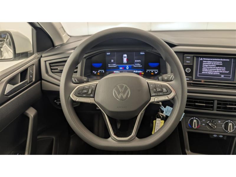 2 interfaces USB-C à l'AVAirbags frontaux AV conducteur et passager (Airbag passager désactivable)Airbags rideaux AV/ARAlerte de perte de pression des pneusAllumage automatique des projecteurs avec feux de jour à LED et fonction "Coming Home/Leaving Home"App-Connect filaire affichage et contrôle via l’écran tactile du véhicule, du contenu, des fonctions et des applications compatibles présents sur le Smartphone (compatibilité avec les systèmes Apple CarPlay et Android Auto)Capteur de pluie avec essuie-glace automatiqueClimatisation manuelle "Climatic"Digital Cockpit : combiné d'instruments entièrement digital de 8"Direction assistéeFatigue Detection : système de détection de fatigue du conducteur qui analyse le comportement du conducteur et recommande un temps de repos par l'apparition d'un message visuel et sonoreFeux AR de brouillardFront Assist : système de surveillance périmétrique avec fonction de freinage d’urgence en ville et détection des piétons et cyclistesInterface Bluetooth pour téléphone portableJantes en acier 5,5 J x 15" avec enjoliveurs intégraux, pneumatiques 185/65 R15Kit de dépannage en cas de crevaison incluant compresseur 12 V et produit colmatantLève-vitres électriques AV/ARLane Assist - Assistant au maintien dans la voie avec correction de trajectoirePark Pilot - Aide au stationnement AV et ARPrise 12 V à l' AVProjecteurs à LED et feux de jour à LED EcoRéception de radio numérique DAB+Régulateur de vitesse y compris limiteur de vitesseRétroviseur intérieur à réglage jour/nuit automatiqueRétroviseurs extérieurs réglables, rabattables électriquement et dégivrantsRadio "Composition" avec écran couleur tactile 6,5" et 4 HPSellerie en tissu "Polo"Siège conducteur réglable en hauteurSystème "Start-Stop" de coupure-redémarrage du moteur à l'arrêtVolant multifonctions réglable en hauteur et en profondeur