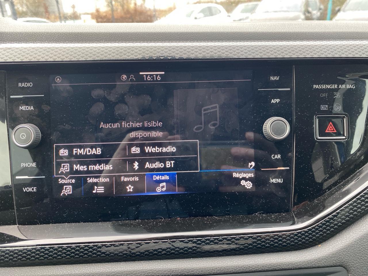 6 haut parleursAbsAccoudoir central av avec rangement réglable en longueurAide au démarrage en côteAirbag conducteurAirbag passagerAirbag passager déconnectableAirbags latéraux avantAirbags rideauxAirbags rideaux arAntenne ar de pavillonAntidémarrage électroniqueAntipatinage électroniqueApp connect sans fil ( apple carplay et android auto)Appel d'urgence e-callApplications décoratives lava stone blackArrêt et redémarrage auto. du moteurAssistance de maintien de trajectoireAvertisseur sonore et lumineux de non extinction des phares et de non bouclage des ceinturesBacs de portes arrièreBacs de portes avantBanquette ar rabattableCaméra de recul rear view avec visualisation de la zone située à l'ar du véhicule sur l'écran de radionavigationCapteur de luminositéCapteur de pluieChargeur à inductionCiel de pavillon couleur céramiqueClim manuelleContrôle élect. de la pression des pneusDéflecteur de toit intégréDigital cockpit 8EspFeux ar de brouillardFeux de jour à ledFixation isofix siège passager avantFixations isofix aux places arrièresFollow me homeFrein à main en cuirGrille de calandre avec baguette chroméeJantes alliage 15 avec écrous antivolKit de dépannage avec compresseur 12v et produit colmatantKit mains-libres bluetoothLampe de coffreLampes de lecture à l'arrièreLampes de lecture à l'avantLimiteur de vitesseLunette arrière surteintéeMiroir de courtoisie conducteur éclairéMiroir de courtoisie passager éclairéPack chrome intérieurPlafonnier à temporisation à l'av avec contacteur de portièrePoches d'aumonièresPoignées ton carrosseriePommeau de levier vitesse en cuirPréparation pour activation ultérieur de la navigation discover mediaPréparation vw connect et vw connect plusPrise 12vPrise usb-c avProjecteurs à ledRégulateur de vitesseRégulation automatique des feux de routeRétroviseur intérieur électrochromeRétroviseurs électriquesRétroviseurs asphérique coté conducteurRétroviseurs dégivrantsRétroviseurs ext. couleur carrosserieRétroviseurs rabattables électriquementRadar de stationnement arRadar de stationnement avRadio numérique dab+Reconnaissance panneaux de signalisationSiège conducteur réglable en hauteurSiège passager réglable en hauteurSystème de détection de somnolenceSystème de freinage anti multi-collisionSystème de prévention des collisions des piétons et cyclistesTémoin liquide lave-glaceTablette cache bagagesTissu polo noirVerrouillage centralisé à distanceVitrage athermiqueVitres arrière électriquesVitres arrière surteintéesVitres avant électriquesVolant cuirVolant multifonctionVolant réglable en profondeur et hauteur