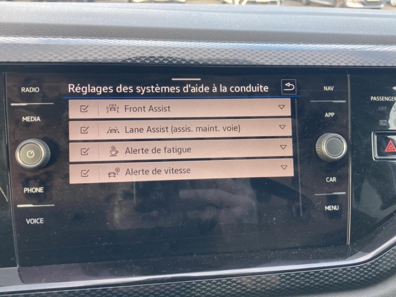 6 haut parleursAbsAccoudoir central av avec rangement réglable en longueurAide au démarrage en côteAirbag conducteurAirbag passagerAirbag passager déconnectableAirbags latéraux avantAirbags rideauxAirbags rideaux arAntenne ar de pavillonAntidémarrage électroniqueAntipatinage électroniqueAppel d'urgence e-callApplications décoratives lava stone black sur le tableau de bordArrêt et redémarrage auto. du moteurAssistant de maintien dans la voieAvertisseur sonore et lumineux de non extinction des phares et bouclages des ceinturesBacs de portes arrièreBacs de portes avantBanquette ar rabattableBlocage électronique de différentielCaméra de recul rear view avec visualisation de la zone situéeCapteur de luminositéCapteur de pluieChargeur à inductionCiel de pavillon couleur céramiqueClim manuelleContrôle élect. de la pression des pneusDéflecteur de toit intégréDigital cockpit 8Ecran couleur tactile 8EspEssuies-glaces av/ar avec commande d'intermittence et lave-glaceFeux ar de brouillardFeux de jour à ledFiltre à charbon actif avec aspiration d'air fraisFixation isofix siège passager avantFixations isofix aux places arrièresFollow me homeFrein à main en cuirGrile de calandre avec aspiration d'air fraisJantes alliage 15 avec écrous antivolKit de dépannage avec compresseur 12v et produit colmatantKit mains-libres bluetoothLampe de coffreLampes de lecture à l'arrièreLampes de lecture à l'avantLimiteur de vitesseLunette arrière surteintéeMiroir de courtoisie conducteur éclairéMiroir de courtoisie passager éclairéPack chrome intérieurPalettes changement vitesses au volantPlafonnier à temporisation à l'av avec contacteur de portièrePoches d'aumonièresPoignées et rétroviseurs ext. ton carrosseriePommeau de levier vitesse en cuirPréparation pour activation ltérieur de la navigation discover mediaPréparation pour vw connect plusPrise 12v avPrise usb-c avProjecteurs à ledRégulateur électronique de couple dinertieRégulateur de vitesseRégulation auto des feux de routeRétroviseur ext asphérique côté conducteurRétroviseur intérieur électrochromeRétroviseurs électriquesRétroviseurs dégivrantsRétroviseurs rabattables électriquementRadar de stationnement arRadar de stationnement avRadio numérique dab+Reconnaissance panneaux de signalisationSiège conducteur réglable en hauteurSiège passager réglable en hauteurSystème audio et infotainment ready 2 discoverSystème de détection de somnolenceSystème de freinage anti multicollisionSystème de récupération de l'énergie en décelérationSystème de sécurité post-collisions piétons et cyclistesTémoin liquide de lave glaceTémoins de contrôle et indicateur d'intervalle de révisionTablette cache bagagesTapis av/arTissu polo noirVerrouillage centralisé à distance, 2 clés pliantes de radiocommande fourniesVitrage athermiqueVitres arrière électriquesVitres arrière surteintéesVitres avant électriquesVolant cuirVolant multifonctionVolant réglable en profondeur et hauteur
