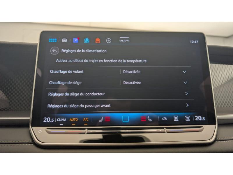 2 interfaces USB-C AV et prise 12V dans la console centrale2 prises de chargement USB-C dans la console centrale AR, capacité de charge jusqu'à 45W7 places assisesAccoudoir central AVAirbag conducteur et passager AV avec désactivation de l'airbag du passager AVAirbags rideaux et latéraux AV/AR, airbag centralAlarme antivol avec protection volumétriqueAllumage automatique des projecteurs avec feux de jour à LED et fonction "Coming/Leaving Home"App-Connect sans fil - affichage et contrôle via l’écran tactile de la voiture, du contenu, des fonctions et des applications compatibles présents sur le Smartphone (compatibilité avec les systèmes Apple CarPlay, Apple CarPlay sans fil, Android Auto, MirrorLinAppui lombaire, réglage pneumatique des 2 côtésAssistant au démarrage en côteAssistant aux manoeuvres de stationnement "Park Assist Pro"Assistant d'intersection: système de surveillance périmétrique des intersections. Ce système freine automatiquement le véhicule en cas d'urgence lors d'une intersectionAssistant de freinage d'urgence Front Assist avec système de détection des piétons et cyclistesAssistant de maintien sur la voie Lane AssistAvertissement de sortie de véhicule: lorsque le conducteur veut sortir du véhicule mais qu'un cycliste ou véhicule s'approche par derrière, le conducteur est averti (le témoin d'aide au changement de voie s'allume sur le rétroviseur, un sBandeau lumineux AV/ARBanquette AR coulissante et dossier divisés, rabattablesCaméra de reculClimatisation automatique "Air Care Climatronic" 3 zones sDétecteur de fatigueDétecteur de pluieDétection d'angles morts "Side Assist" avec assistance de sortie de stationnementDéverrouillage à distance pour le dossier de banquette ARDispositif start/stopDossier de siège passager AV entièrement rabattableDrive Experience Control: Sélecteur de profil de conduite avec écran OLED tactile - Permet d'ajuster le volume, le profil de conduite ainsi que les "Atmosphères" - Appuyer sur le sélecteur pour afficher les profils de conduite, passez votre doigt sur lEclairage d'ambiance 10 couleursEclairage périmétrique avec projection de logoEcran tactile 12,9"Frein de stationnement électronique y compris fonction Auto HoldHayon à ouverture pilotée par capteurs et fermeture électrique différée, avec déverrouillage à distanceInterface Bluetooth pour portableLève-vitres électriques AV/ARLight Assist: Activation ou désactivation automatique des feux de route en fonction des sources lumineuses en présence (dès 60 km/h)Logo éclairé AV/AROeillets de retenue ISOFIX pour sièges pour enfants sur sièges AR extérieurs et sur siège passager AV, compatibles i-SizePlancher de coffrePrise 12V dans le coffre à bagagesRéception de radio numérique (DAB+)Régulateur de vitesse adaptatif et prédictif ACC avec limiteur de vitesseRétroviseur intérieur à réglage jour/nuit automatiqueRétroviseurs extérieurs réglables électriquement et dégivrantsRadars de stationnement AV/ARSellerie en tissuSièges AV réglables en hauteurStores pare-soleil pour vitres ARSystème Audio & Infotainment "Ready 2 Discover"Système de contrôle de l'état des pneusSystème de détection de la signalisation routièreSystème de fermeture et de démarrage sans clé "Keyless Access"Tableau de bord Digital Cockpit 10"Volant multifonction en cuir, avec palettes de changement de vitesse