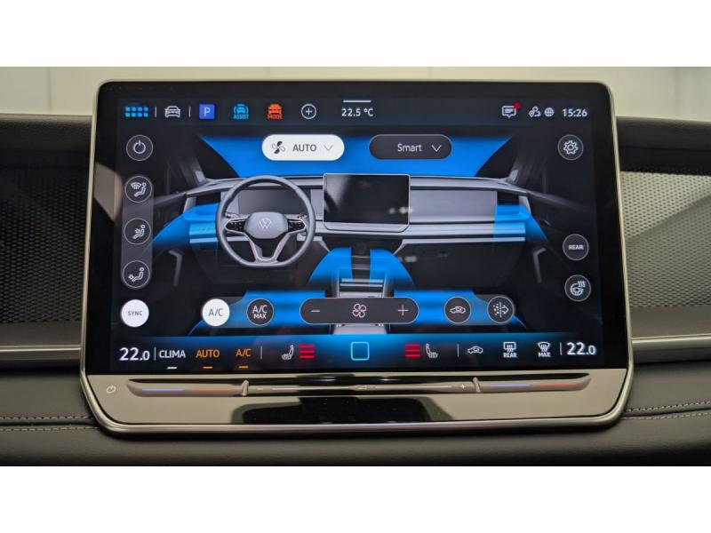 2 interfaces USB-C AV et prise 12V dans la console centrale2 prises de chargement USB-C dans la console centrale AR, capacité de charge jusqu'à 45W7 places assisesAccoudoir central AVAirbag conducteur et passager AV avec désactivation de l'airbag du passager AVAirbags rideaux et latéraux AV/AR, airbag centralAlarme antivol avec protection volumétriqueAllumage automatique des projecteurs avec feux de jour à LED et fonction "Coming/Leaving Home"App-Connect sans fil - affichage et contrôle via l’écran tactile de la voiture, du contenu, des fonctions et des applications compatibles présents sur le Smartphone (compatibilité avec les systèmes Apple CarPlay, Apple CarPlay sans fil, Android Auto, MirrorLinAppui lombaire, réglage pneumatique des 2 côtésAssistant au démarrage en côteAssistant aux manoeuvres de stationnement "Park Assist Pro"Assistant d'intersection: système de surveillance périmétrique des intersections. Ce système freine automatiquement le véhicule en cas d'urgence lors d'une intersectionAssistant de freinage d'urgence Front Assist avec système de détection des piétons et cyclistesAssistant de maintien sur la voie Lane AssistAvertissement de sortie de véhicule: lorsque le conducteur veut sortir du véhicule mais qu'un cycliste ou véhicule s'approche par derrière, le conducteur est averti (le témoin d'aide au changement de voie s'allume sur le rétroviseur, un sBandeau lumineux AV/ARBanquette AR coulissante et dossier divisés, rabattablesCaméra de reculClimatisation automatique "Air Care Climatronic" 3 zones sDétecteur de fatigueDétecteur de pluieDétection d'angles morts "Side Assist" avec assistance de sortie de stationnementDéverrouillage à distance pour le dossier de banquette ARDispositif start/stopDossier de siège passager AV entièrement rabattableDrive Experience Control: Sélecteur de profil de conduite avec écran OLED tactile - Permet d'ajuster le volume, le profil de conduite ainsi que les "Atmosphères" - Appuyer sur le sélecteur pour afficher les profils de conduite, passez votre doigt sur lEclairage d'ambiance 10 couleursEclairage périmétrique avec projection de logoEcran tactile 12,9"Frein de stationnement électronique y compris fonction Auto HoldHayon à ouverture pilotée par capteurs et fermeture électrique différée, avec déverrouillage à distanceInterface Bluetooth pour portableLève-vitres électriques AV/ARLight Assist: Activation ou désactivation automatique des feux de route en fonction des sources lumineuses en présence (dès 60 km/h)Logo éclairé AV/AROeillets de retenue ISOFIX pour sièges pour enfants sur sièges AR extérieurs et sur siège passager AV, compatibles i-SizePlancher de coffrePrise 12V dans le coffre à bagagesRéception de radio numérique (DAB+)Régulateur de vitesse adaptatif et prédictif ACC avec limiteur de vitesseRétroviseur intérieur à réglage jour/nuit automatiqueRétroviseurs extérieurs réglables électriquement et dégivrantsRadars de stationnement AV/ARSellerie en tissuSièges AV réglables en hauteurStores pare-soleil pour vitres ARSystème Audio & Infotainment "Ready 2 Discover"Système de contrôle de l'état des pneusSystème de détection de la signalisation routièreSystème de fermeture et de démarrage sans clé "Keyless Access"Tableau de bord Digital Cockpit 10"Volant multifonction en cuir, avec palettes de changement de vitesse